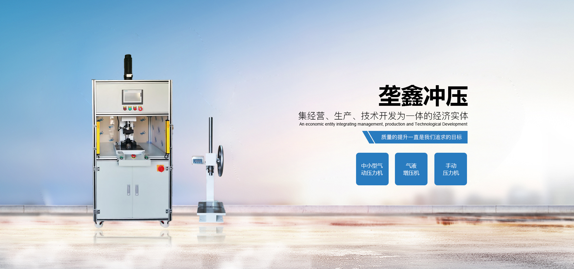 煙臺壟鑫沖壓設備有限公司是集經營、生產、技術開發(fā)為一體的經濟實體,專業致力于中小型壓力機、非標壓力機的設計開發(fā)和制造。在引進德國、日本等國家先進的鉚壓控制技術及機器設計理念的基礎上,結合相關行業的實際需要,開發(fā)出各種臺式、落地式氣動壓力機、手動壓力機、氣液增壓機、氣液增力缸、旋鉚機、無鉚釘鉚接機等鉚接設備。產品應用領域廣泛,適用于汽車零件、電子、電器、家電、包裝、五金、等行業。公司視質量為生命,并一貫遵循對每一臺產品負責,對每一位用戶負責,真誠為您服務。
